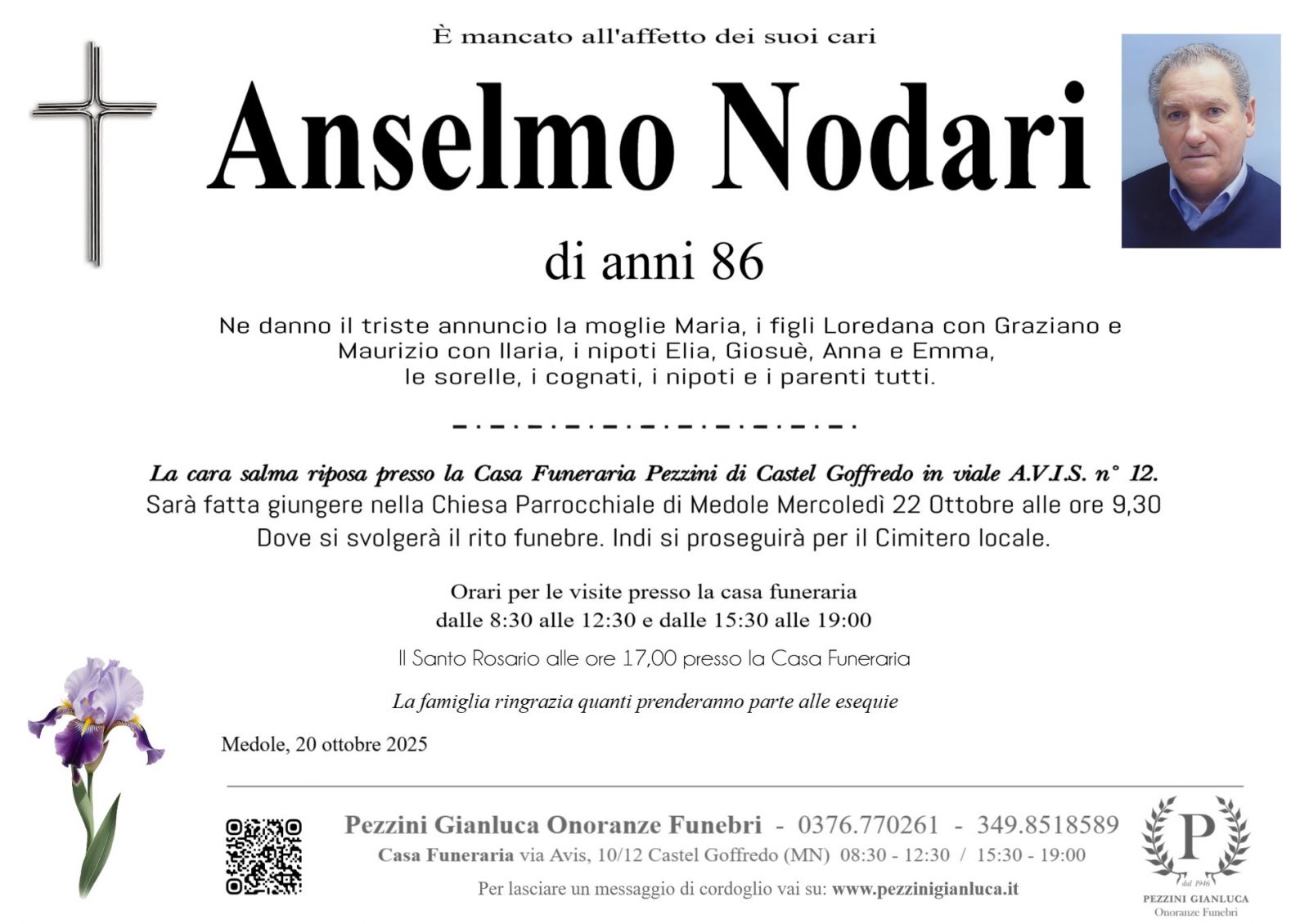 Lascia gratuitamente un messaggio di cordoglio, sarà nostra cura consegnarlo ai congiunti di Anselmo Nodari.